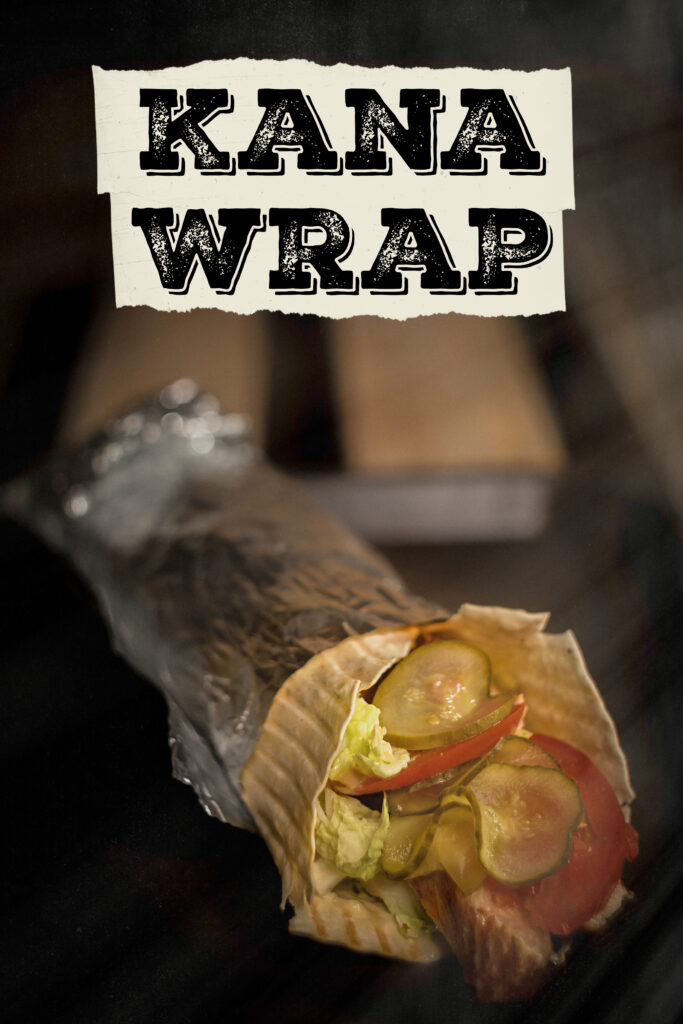 tortilla, kanafilee ribad, hiinakapsas, tomat, marineeritud kurk, kaste
